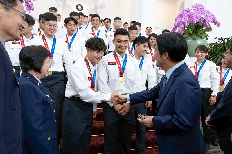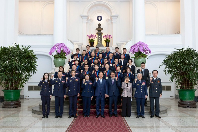 賴清德總統今(27)日上午接見「2025年第21屆世界警察消防運動會」代表團,肯定代表團摘下74金、46銀、48銅,締造歷屆最好成績,展現「臺灣尚勇」精神。期盼未來持續發揮專業及實力,積極維護國人生命財產安全,讓社會變得更好。
