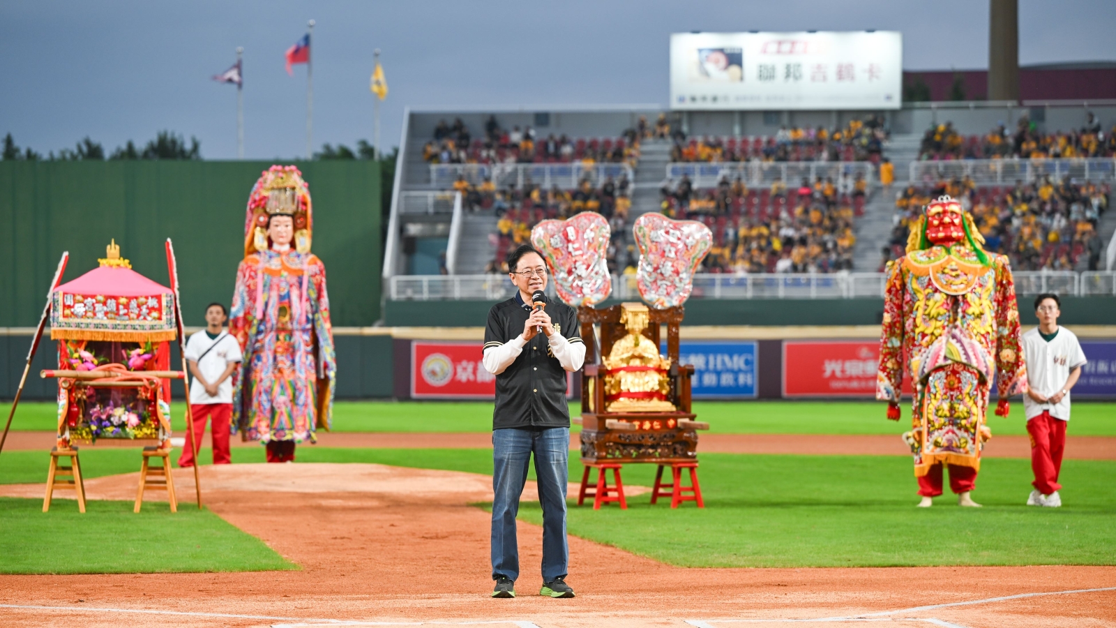 張市長指出,今晚比賽特別邀請桃園慈護宮與中壢仁海宮主神蒞臨觀賽,象徵「雙媽同場」庇佑球隊、凝聚地方向心力。現場球迷熱情吶喊、加油聲不斷,展現桃園人對球隊的支持與信心,也讓宗教信仰與運動賽事在此交織,成為一場兼具文化意涵與地方活力的盛會。