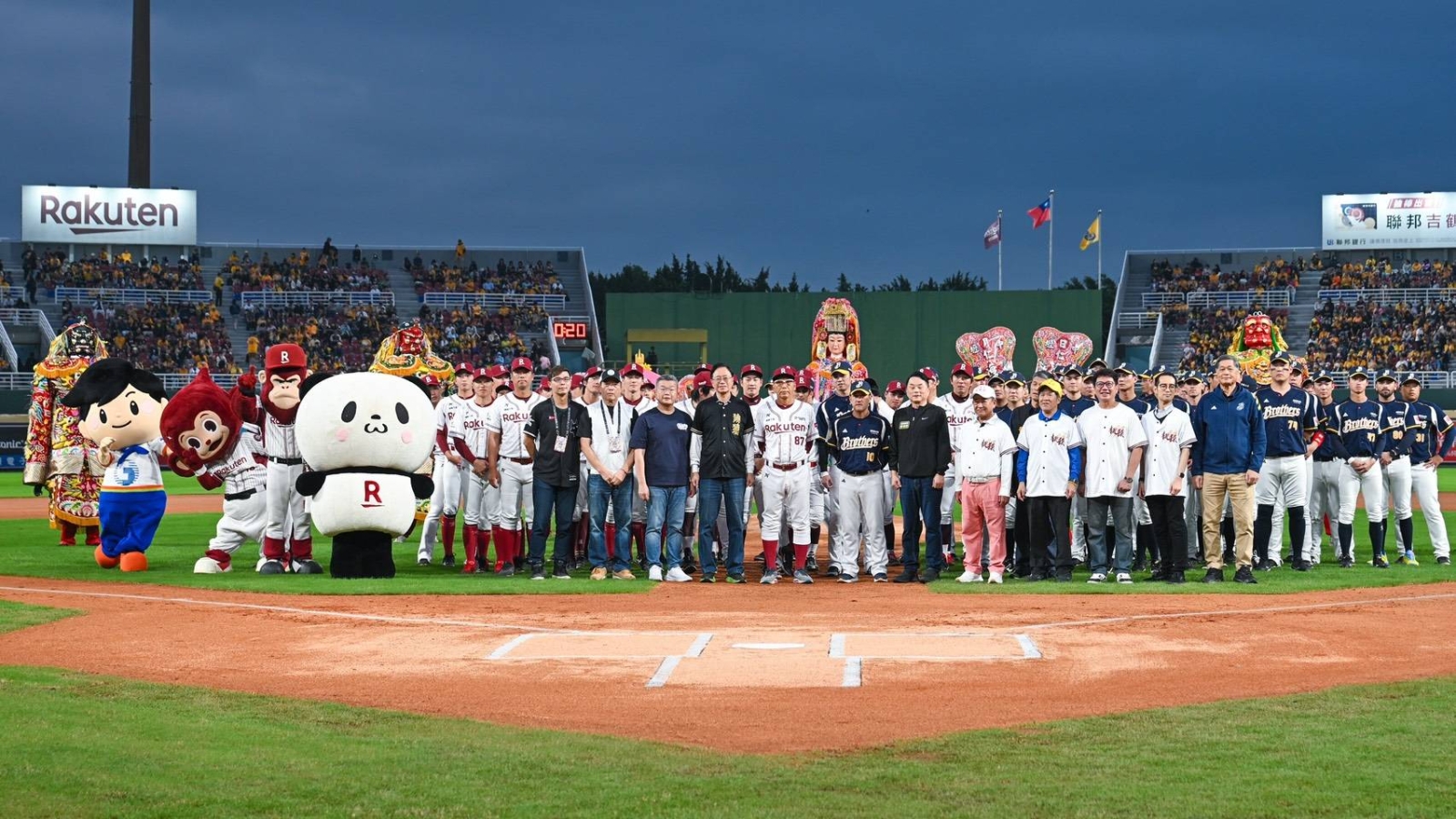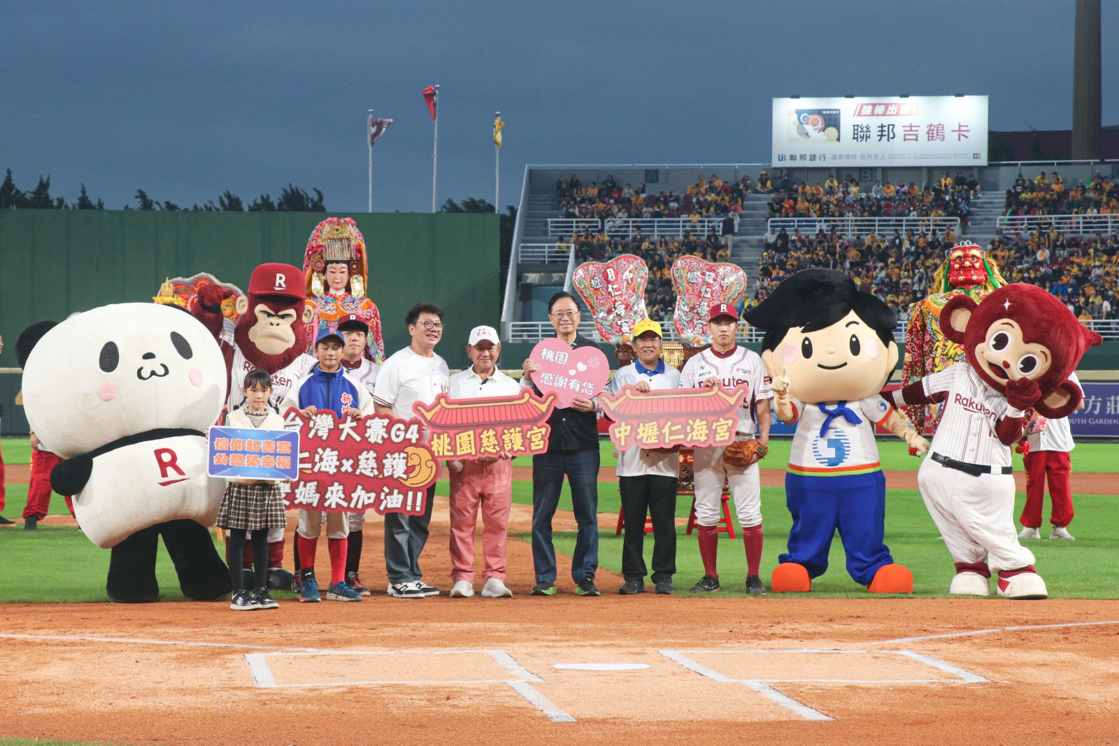 今日包括立法委員魯明哲、蔡其昌、市議員陳韋曄、市府體育局長許彥輝、民政局副局長藍品畯、中壢區長李日強、中壢仁海宮董事長王介禧、桃園慈護宮主任委員簡征潭、「桃園棒球教父」張滄彬、樂天桃猿副董事長暨新任CEO牧野幸輝等均一同出席。