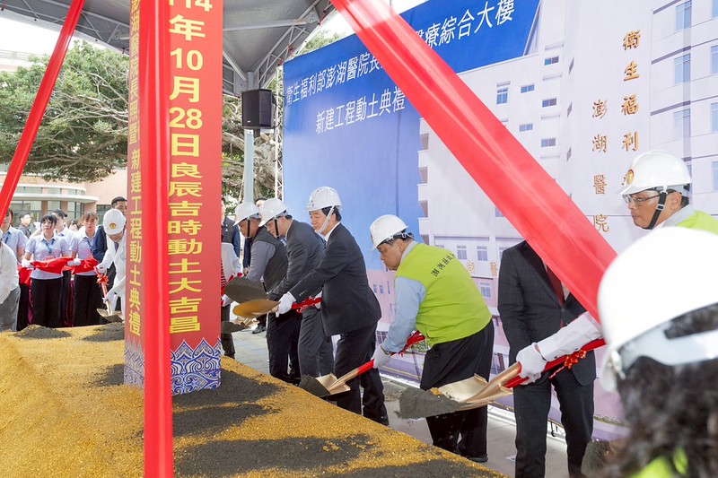 隨後,總統與現場貴賓一同進行祈福動土儀式。包括衛生福利部次長呂建德、內政部次長董建宏、澎湖縣長陳光復、衛生福利部澎湖醫院院長匡勝捷等亦出席是項動土典禮。