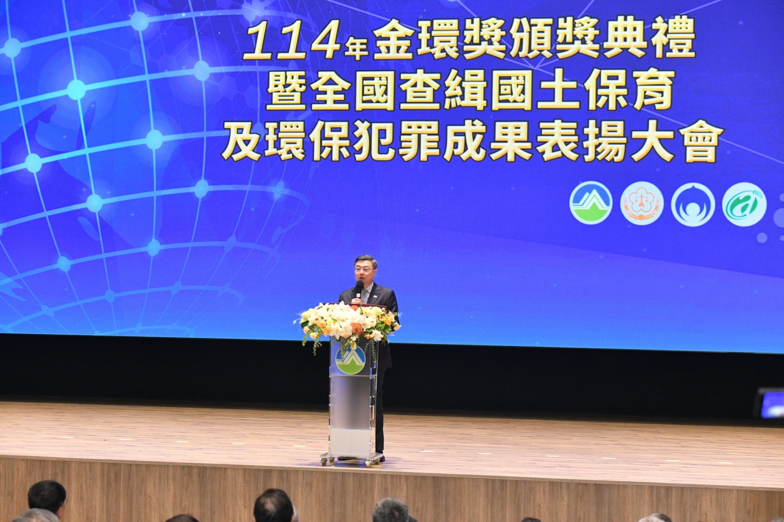 行政院長卓榮泰昨(29)日出席「114年金環獎頒獎典禮暨全國查緝國土保育及環保犯罪成果表揚大會」,肯定所有獲獎同仁善用科技工具,透過橫向聯繫相互合作,積極投入國土保育及查緝環保犯罪工作,強力偵辦包括廢棄物違法傾倒、化學物質排放河川破壞水質、焚燒大型建築廢棄物、非法棄置營建產出物等非法情事,成為眾人楷模典範,這不僅仰賴一股衝勁而已,更要耐得住寂寞與危險,同時也向國人傳達一項訊息:天災或許難免,但人禍是可以預防避免,只要提高警覺,就能全心全力讓臺灣國土獲得更有效的保護。卓院長也期許所有獲獎同仁帶領更多夥伴一同投入山林保育計畫。