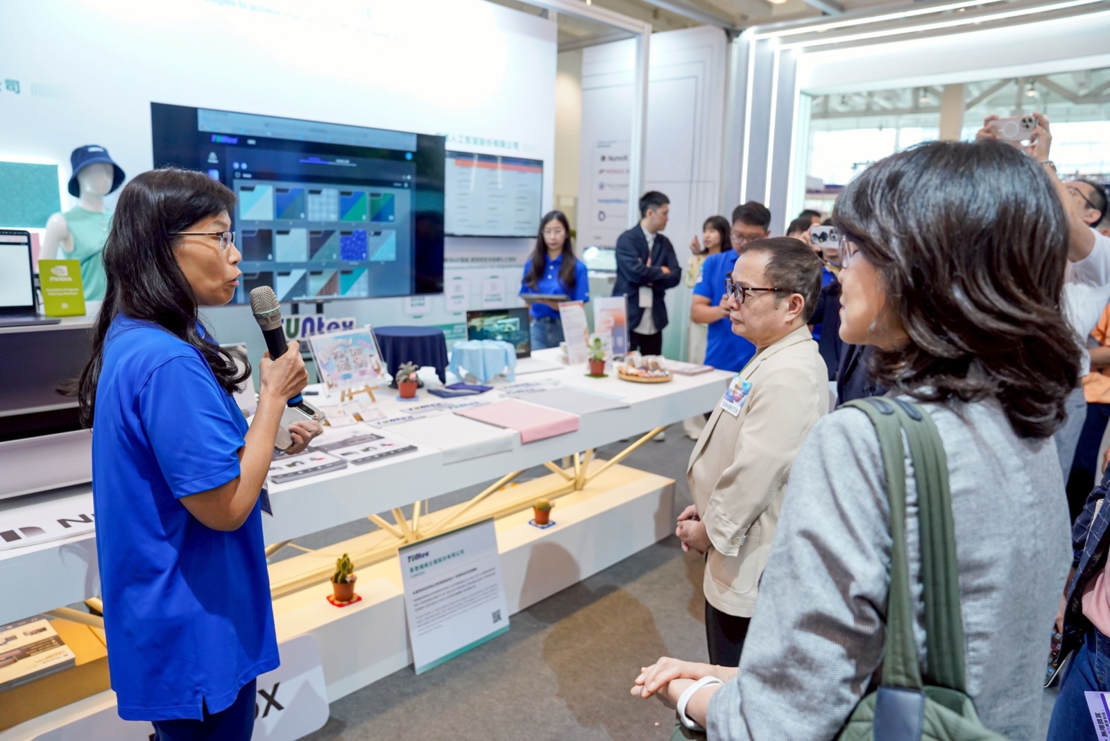 參與計畫的在地企業東豐纖維經理林明旺表示,透過引入創新解決方案,不僅有效加速產品研發與打樣的效率,更能降低生產與溝通的成本。(圖為東豐纖維於2025年亞灣新創大南方展示計畫成果)圖1