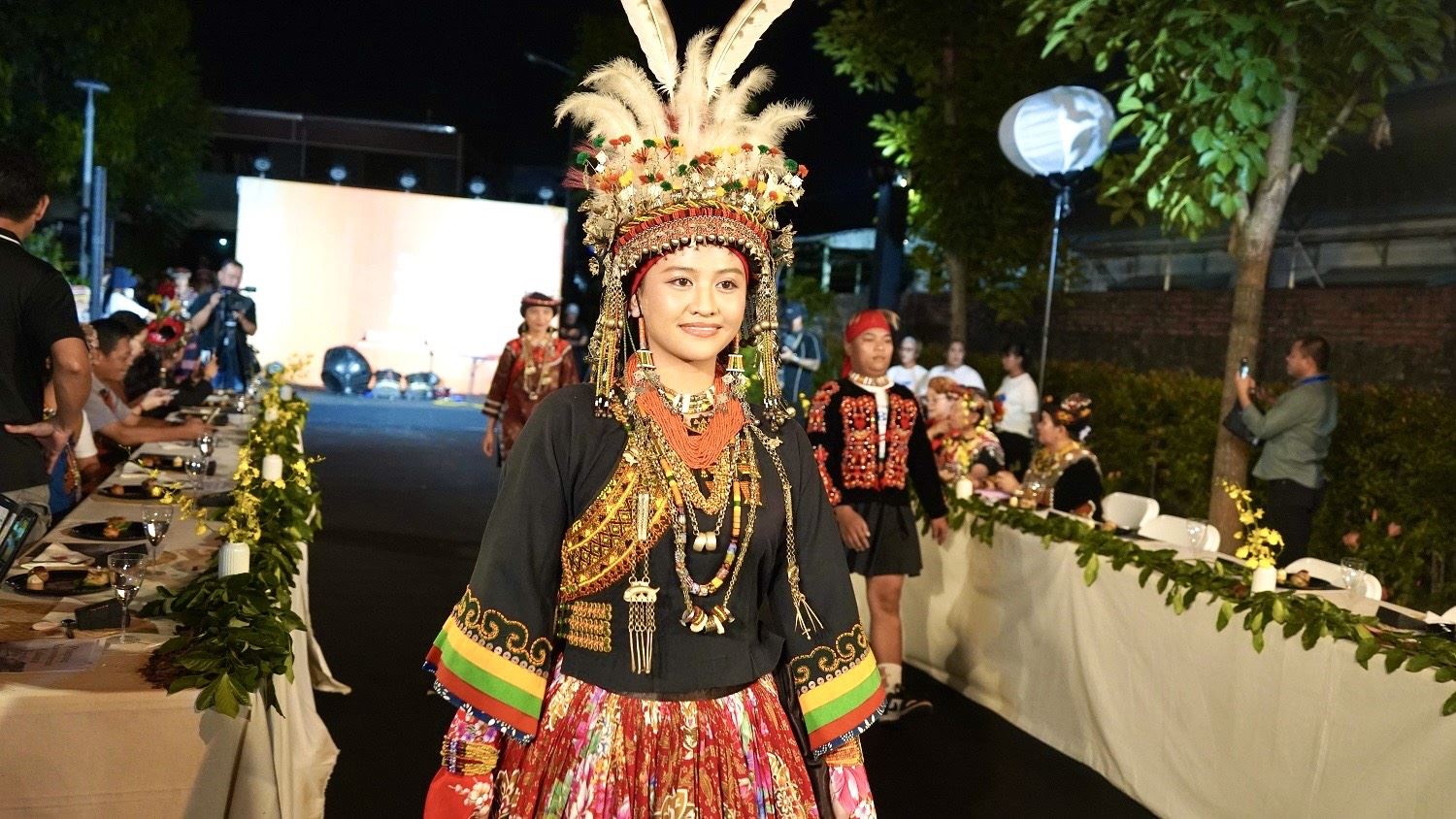 活動開場由屏東原鄉、屏東市原住民族協會青年及吐瓦魯在台學生會共同演出,青年男女身著族群華麗服飾,踏著鼓點緩緩入場,月光照映下的步伐充滿力量與柔情,縣長周春米也以一襲原民當代改良服飾現身舞台,象徵傳統與現代的交融,贏得現場掌聲不斷。現場觀眾沉醉於旋律、燈影與香氣交織的南島夜色中,月光、樂聲、走秀與佳餚相映成趣,成就一場難忘的文化饗宴。