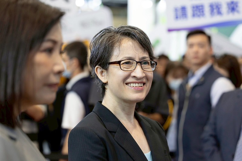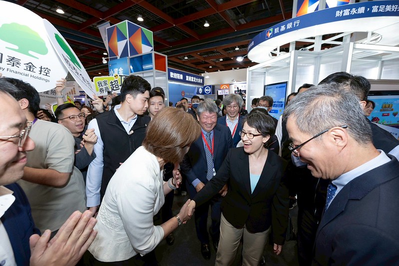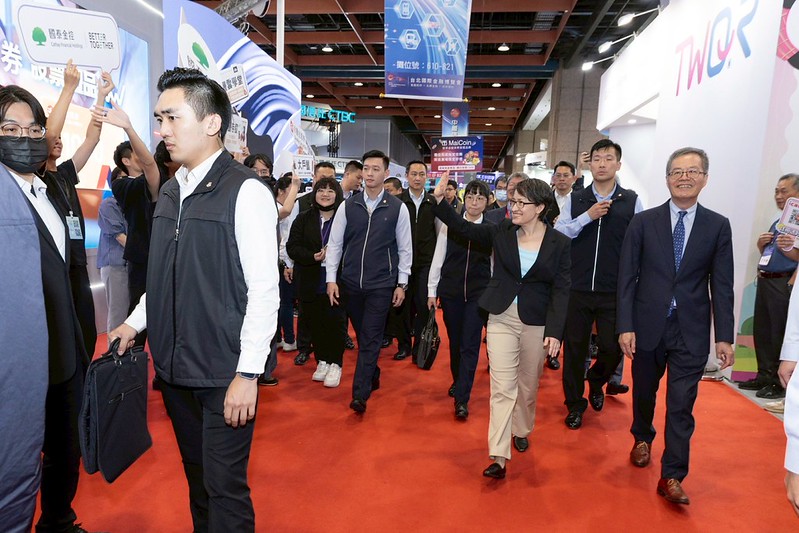 蕭美琴副總統今(9)日上午前往臺北世貿一館參觀「2025 台北國際金融博覽會」,對臺灣金融產業各項創新服務表達肯定之意。