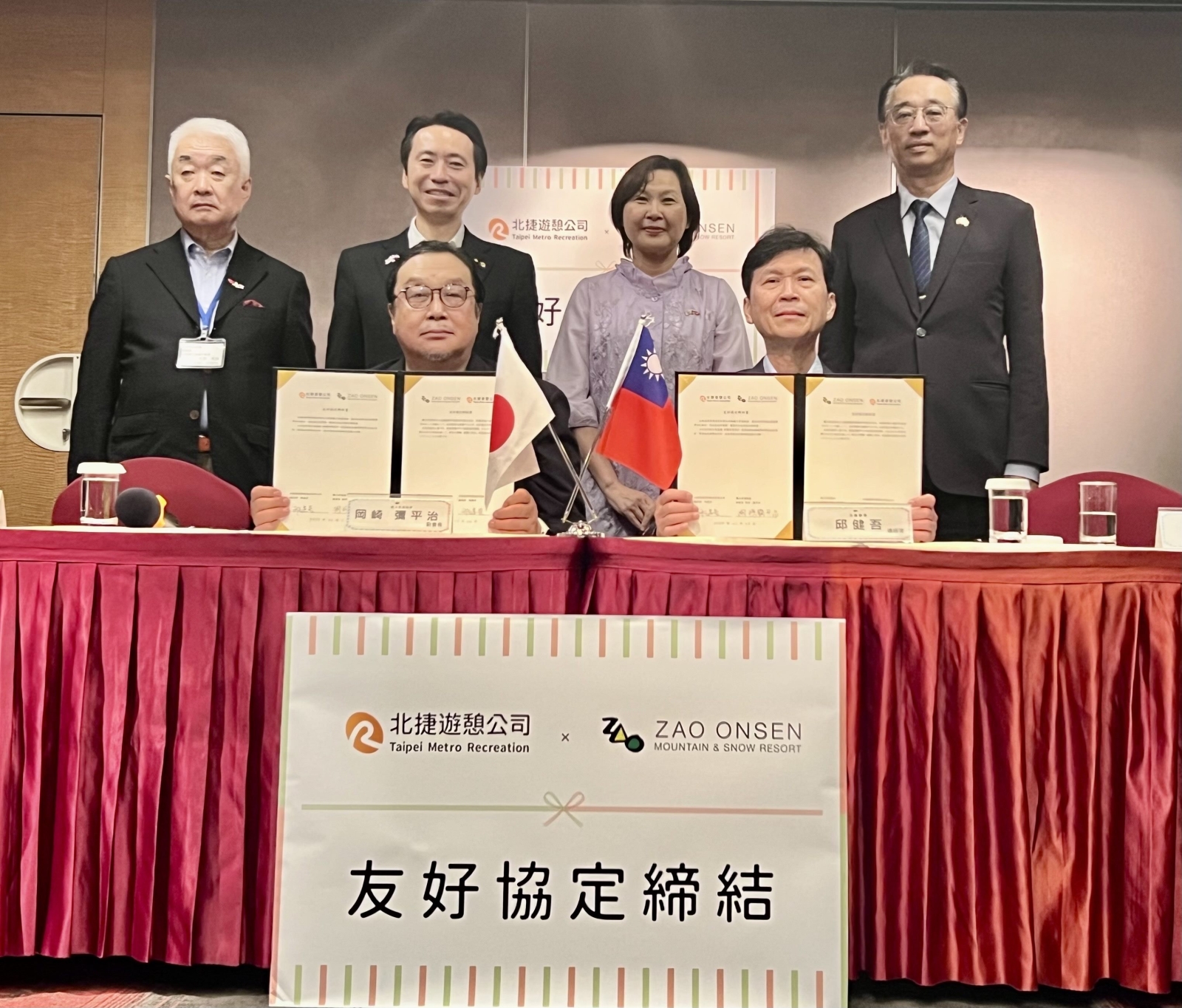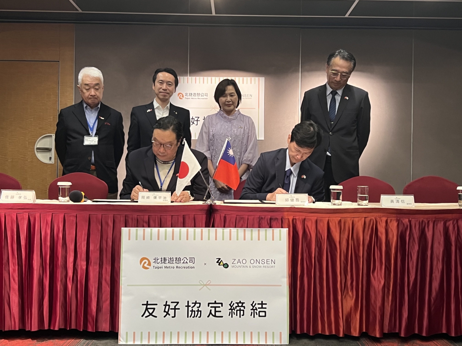 北捷遊憩公司與日本藏王索道協會,於14日簽署友好協定,在外交部總領事張淑玲、北捷遊憩公司董事長黃清信及山形市市長佐藤 孝弘見證下,北捷遊憩公司總經理邱健吾與藏王索道協會副會長岡崎 彌平治,雙方共同簽署友好協定締結書,攜手推動觀光運輸經濟與交流合作。