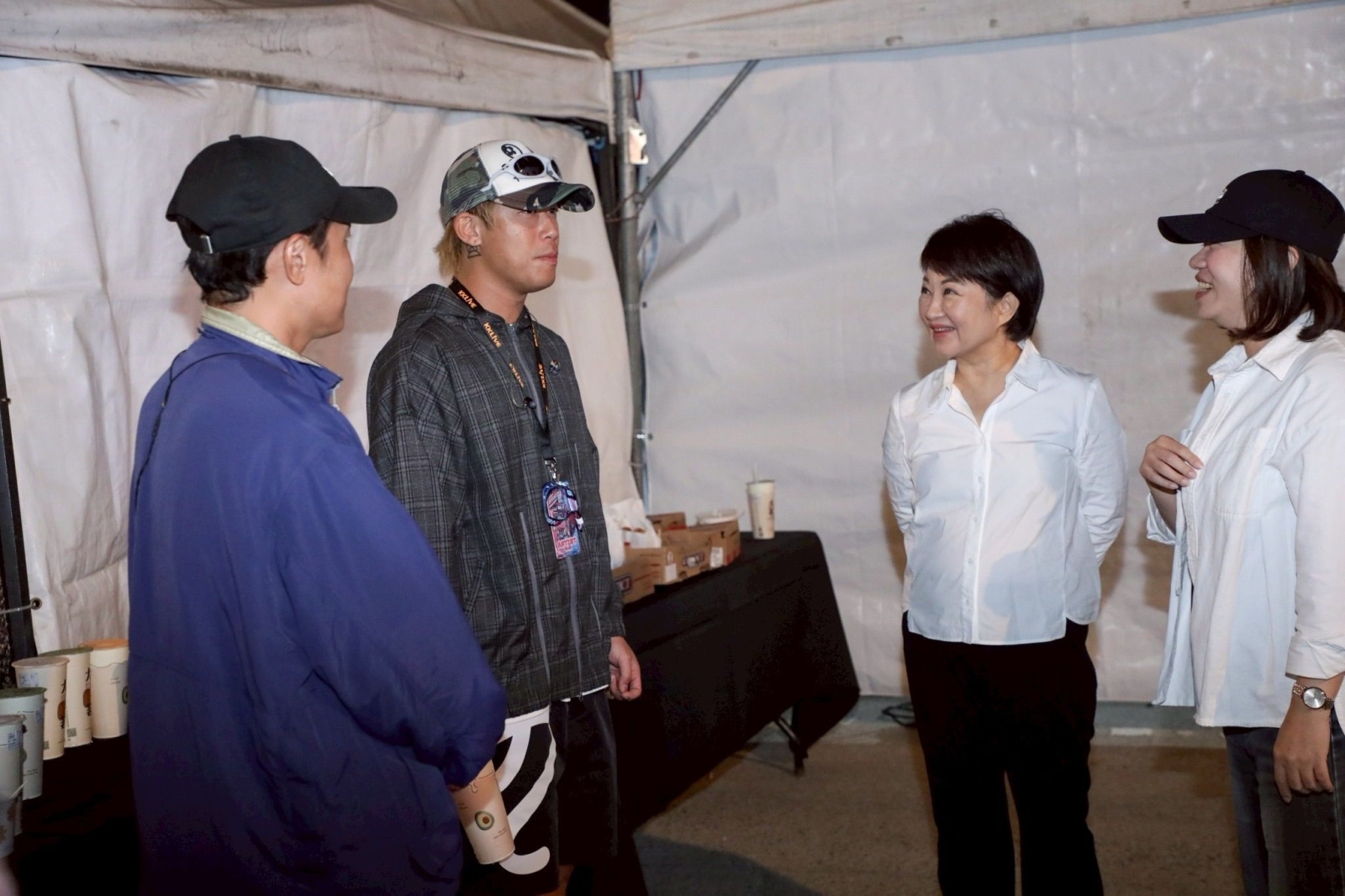 盧市長抵達彩排現場後,逐一與玖壹壹三位成員春風(洪瑜鴻)、洋蔥(陳皓宇)、健志(廖建至)握手致意,感謝他們連續兩年選擇台中舉辦大型音樂祭,成功將中央公園打造成音樂活動新地標。她笑稱:「玖壹壹是台中的驕傲,每次回娘家都帶來滿滿熱情與感動!」玖壹壹則感謝市府長期支持,讓他們每次演出都十分順利圓滿。新聞局長欒治誼與主任秘書黃冠穎亦陪同市長到場關心。