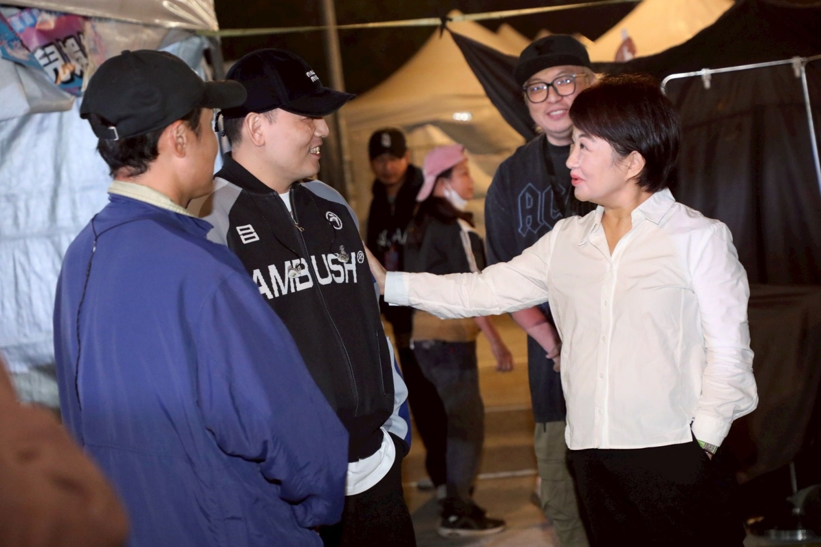 台中市長盧秀燕昨晚親赴中央公園「玖壹壹南北貳路音樂節2025」彩排現場探班,祝福演出圓滿成功。 圖3