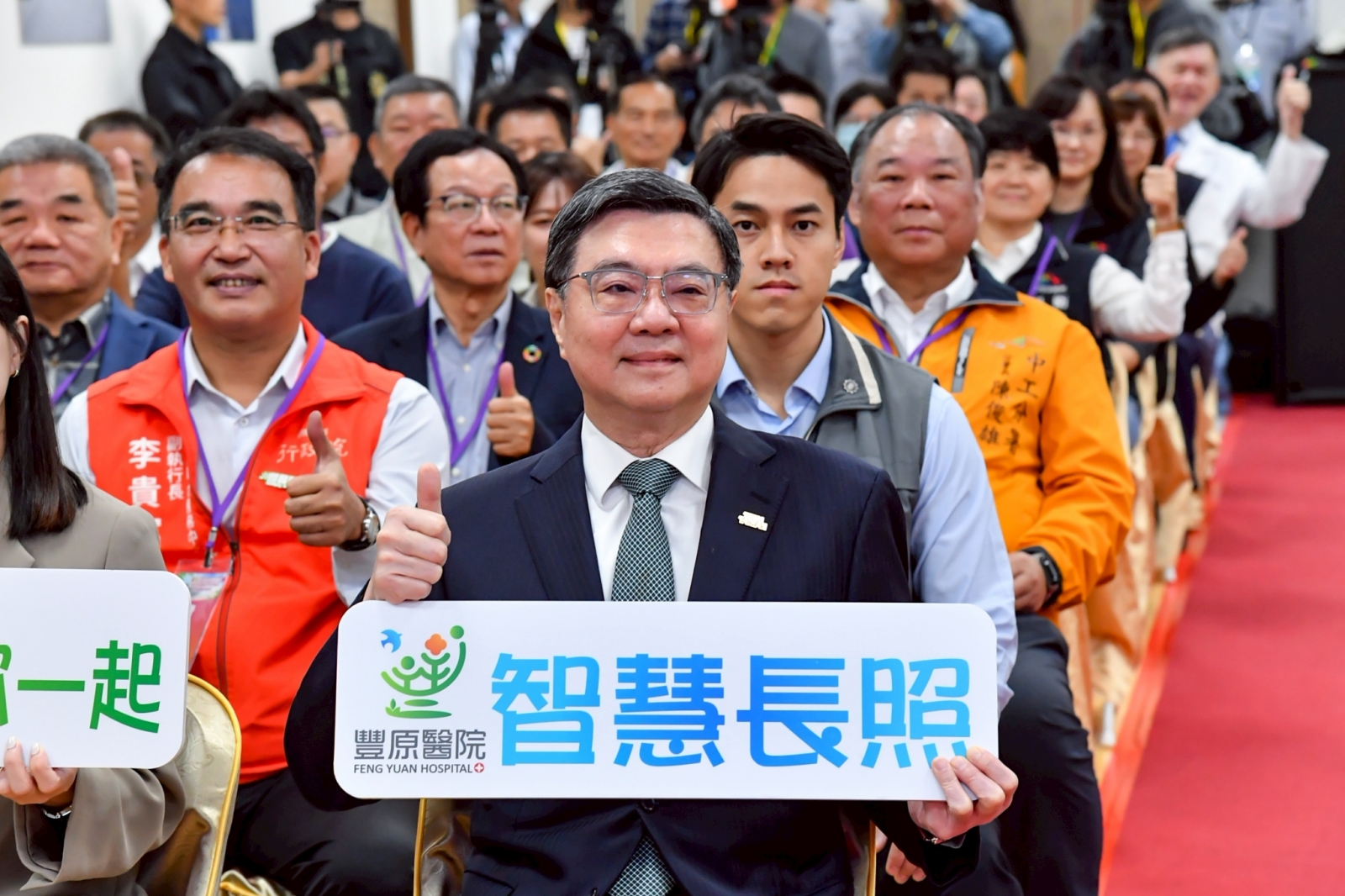 卓院長抵達現場後,首先手持「智慧長照」手板與現場貴賓於座位上合影,並欣賞紫羅蘭樂團弦樂演出,接續聽取豐原醫院李永恒院長說明豐原醫院附設后里綜合長照機構工程簡報。致詞結束後,卓院長與行政院李慧芝發言人、內政部吳堂安次長、衛生福利部呂建德次長、行政院中部聯合服務中心李富貴副執行長、何欣純立委、楊瓊瓔立委、臺中市賴淑惠副市長及豐原醫院李院長等貴賓,於舞臺上一同按下光柱,完成啟動儀式並合影留念。