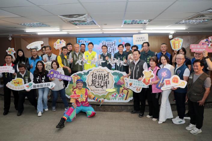 今日記者會由小丑熱鬧開場,觀光旅遊局林國華局長、議員王宣貿、立委陳亭妃、立委林俊憲、立委謝龍介辦公室及各議員服務處代表皆到場參與。