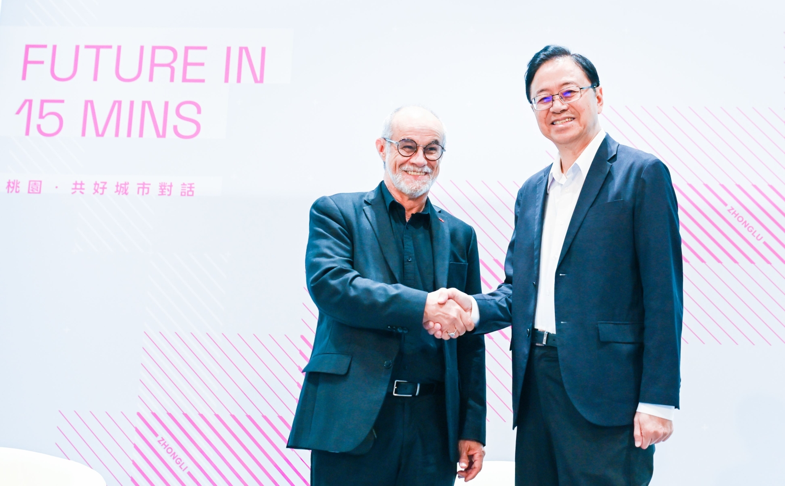 論壇中,張市長與巴黎索邦大學教授Carlos Moreno交流桃園落實「15分鐘城市」的機會與挑戰。張市長表示,桃園長期承接雙北通勤人口,各區發展脈絡不同,要全面達成15分鐘生活圈具高度挑戰,因此市府將從就業、教育、醫療三面向打造多核心生活圈;包括創造更多在地就業機會、加速布建托育與教學設施、完善通學步道與通勤路網,以及透過市立醫院分院普及醫療資源。
