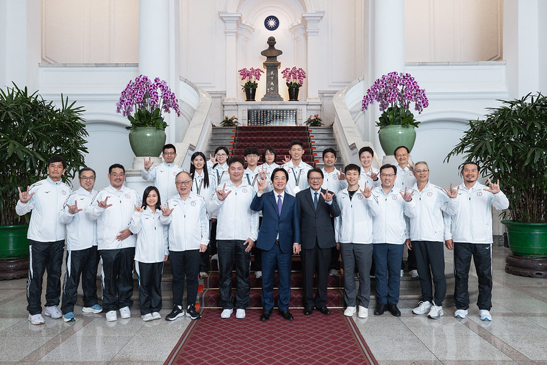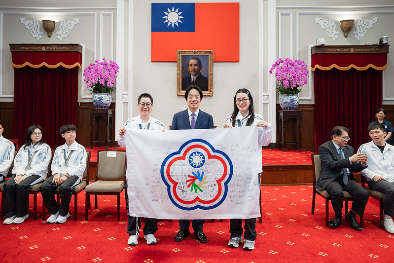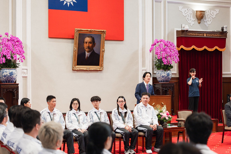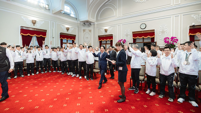 賴清德總統昨(2)日下午接見「2025年東京第25屆達福林匹克運動會」代表團選手、教練及隊職員,肯定代表團在東京聽奧拿下1金、6銀、6銅的好成績,展現堅韌的臺灣精神。並表示,未來政府會投入更多資源,持續調整政策健全環境設施,也將照顧所有運動員的運動生涯,期盼全力落實「用運動壯大臺灣」的目標。
