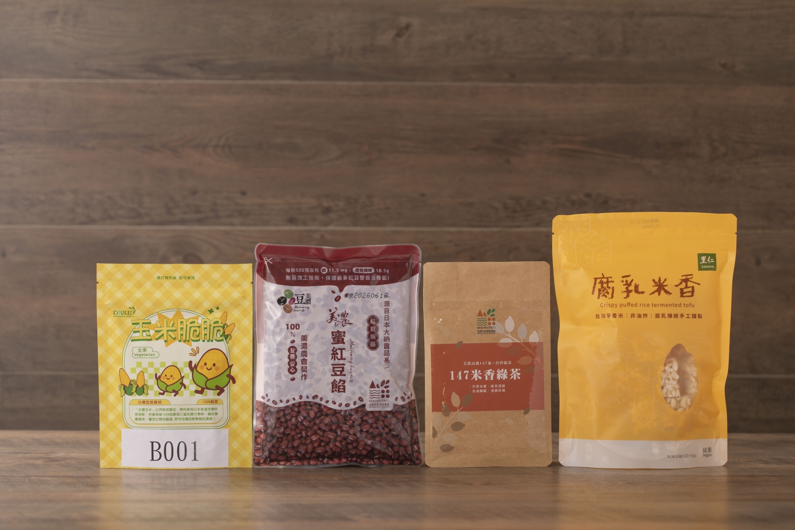 佳作產品同樣展現亮眼創新,包括滄聯農產行「腐乳米香」以芋香米結合有機腐乳,呈現濃郁卻不厚重的臺味點心;美濃農會「147米香綠茶」以147香米入茶帶出米香與茶香的清爽風味;美濃農會「蜜紅豆餡」使用高雄9號紅豆高壓滅菌,香甜綿密、用途多元;德朱利斯國際「玉米脆脆」以契作非基改甜玉米搭配急凍與低溫酥炸技術,呈現香甜爽脆,是玉米零嘴精品化的重要代表。