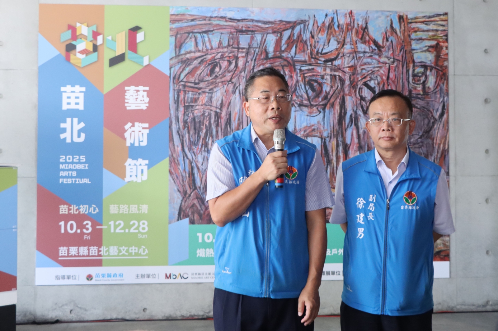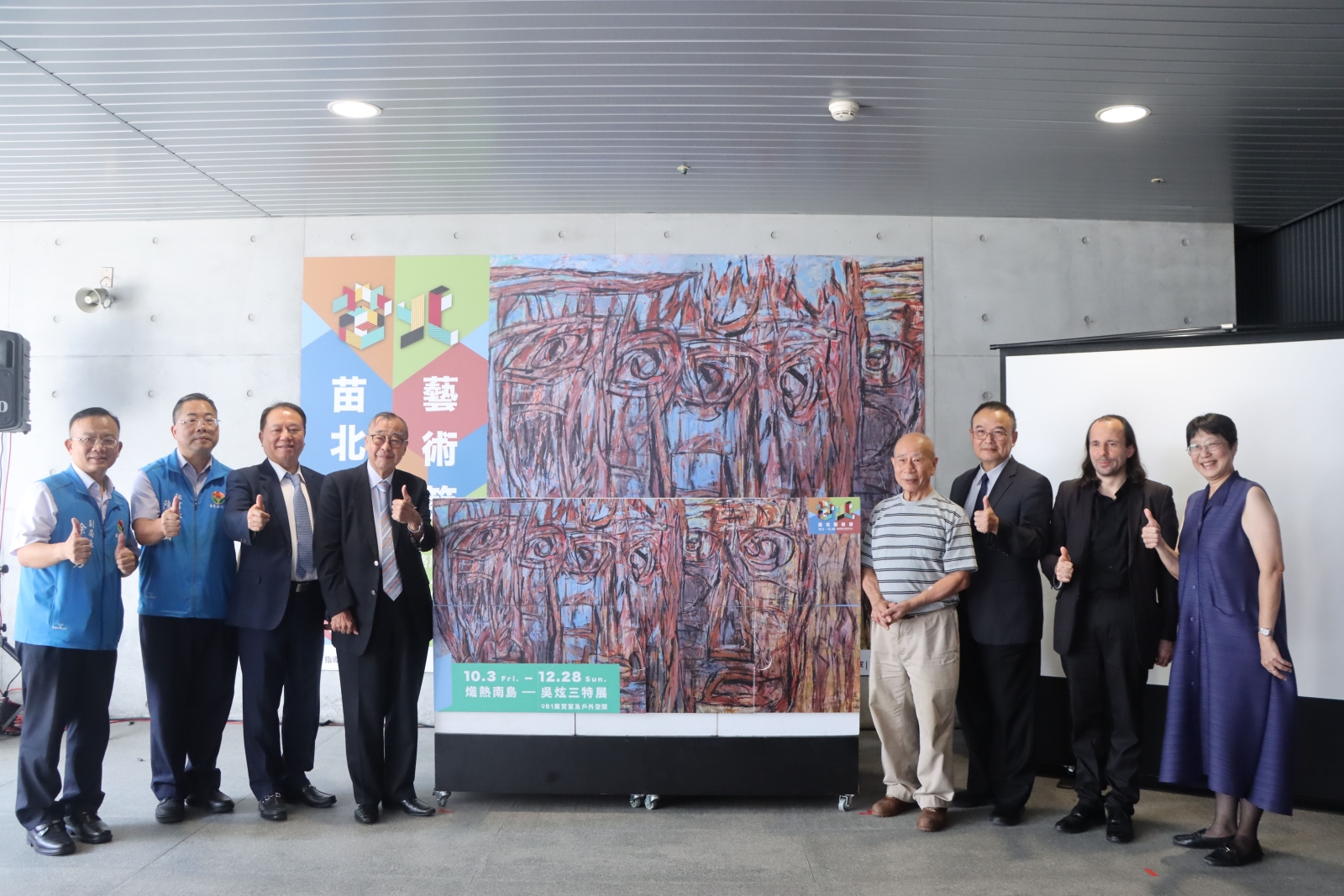 2025苗北藝術節以「苗北初心·藝路風清」為主題, 3日隆重登場,秘書長陳斌山親臨苗北藝文中心,出席首波展演單元《熾熱南島—吳炫三特展》開幕儀式,與現場貴賓一同見證藝術節的盛大啟航。