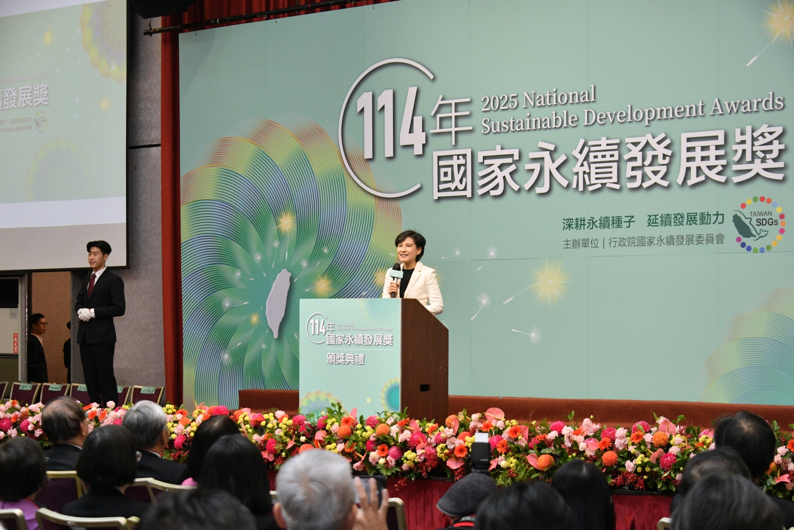 2025年12月8日行政院副院長鄭麗君出席114年國家永續發展獎頒獎典禮。圖1
